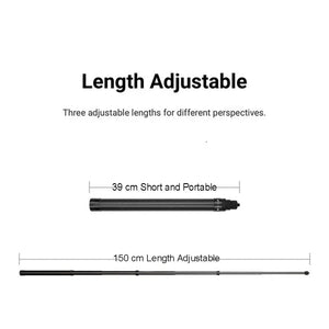 Experience the ultimate in selfie sticks with the 1.5m Carbon Fiber Extended Monopod. Whether you're capturing special moments with your Insta360, DJI Action, GoPro, or Xiao Yi sports camera, this invisible selfie stick allows you to achieve 360-degree follow-up special effects anytime, anywhere.