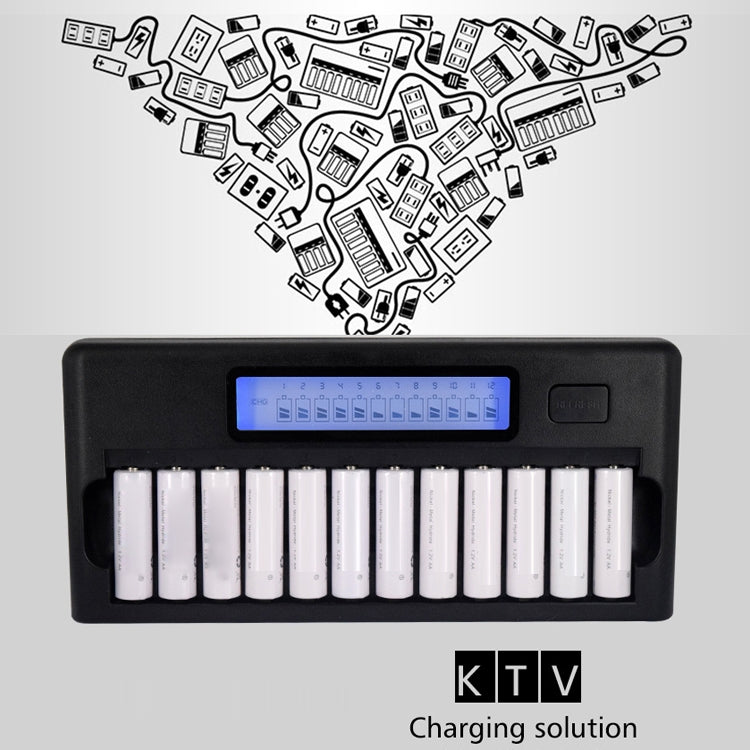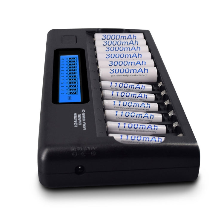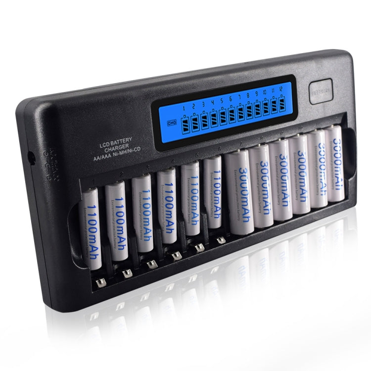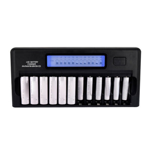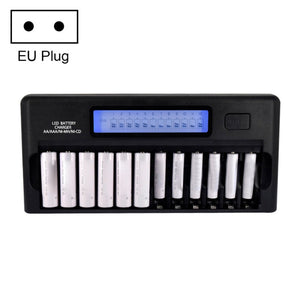 12-Slot Battery Charger with LCD Display for AA / AAA / NI-MH / NI-CD Battery, EU Plug