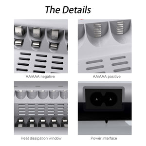 8-Slot Universal Voltage Battery Charger for AA & AAA Batteries with Intelligent Chip Protection