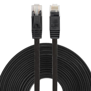 10m Ultra-Thin Cat6 Flat Ethernet Network LAN Cable - Black RJ45 Patch Lead