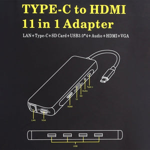 Versatile 11-in-1 Adapter with VGA, LAN, USB 3.0, SD/TF Card, HDMI, Audio, and USB-C Ports (Dark Gray)