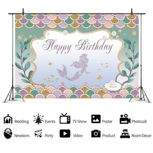 Mermaid Happy Birthday Photography Background Cloth 120 x 80cm