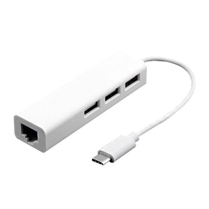 13cm USB-C 3.1 / Type-C 100 Mbps Ethernet Adapter with 3-port USB 2.0 Hub