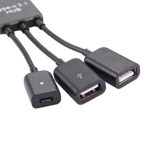 3-Port USB-C/Type-C 3.1 OTG Charge HUB Cable (17.8cm) - Black
