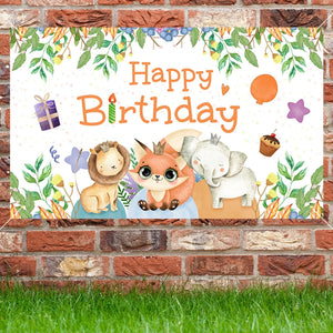 Animal Birthday Theme Professional Photography Backdrop Cloth - 2pcs Set