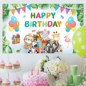 Animal Birthday Theme Backdrop Cloth - 2pcs - 180x110cm - Party Decoration