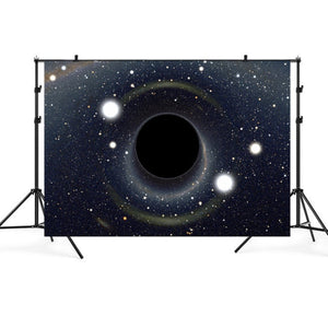Enhance your photography with this professional black hole starry sky theme party photography background cloth. Crafted from high-quality photo cloth vinyl material, this backdrop is not only durable but can also be ironed for a flawless look.