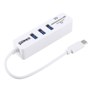 2-in-1 TF & SD Card Reader + 3 USB Ports to USB-C HUB Converter - 24cm Length (White)