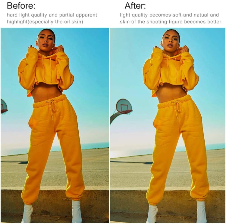 - Eliminates harsh shadows by diffusing the light, resulting in softer and more natural-looking images.