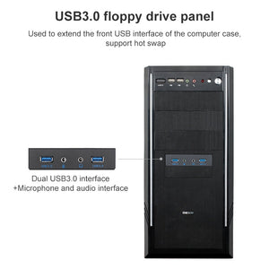 - Front Panel Integration: Convert the 20PIN interface and audio on the board into 2 USB 3.0 interfaces, headphone output, and microphone interface, conveniently installed in an idle floppy drive position to provide front USB and audio interfaces.
