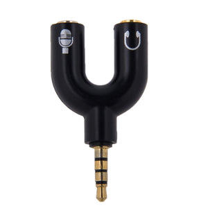 3.5mm Stereo Male to Female Headphone & Mic Splitter Adapter (Black)