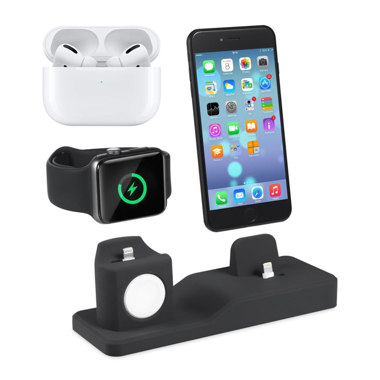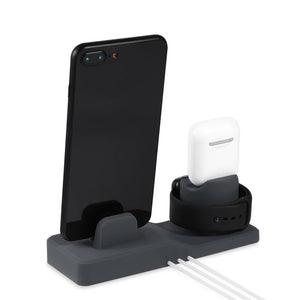 3 in 1 Silicone Charging Dock for Apple Devices (Black) with Bracket Function