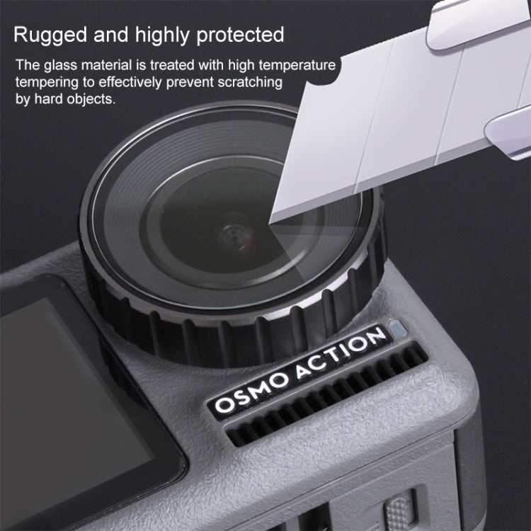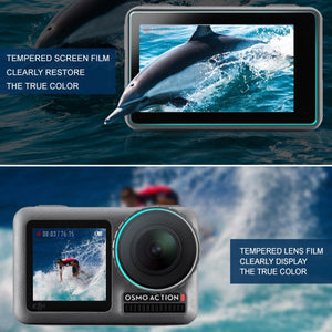 Enhance your DJI OSMO ACTION's durability and clarity with the 3 in 1 Sunnylife OA-GHM628 Tempered Glass Lens Film Sets. The product features: