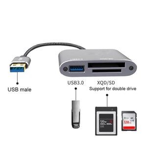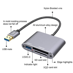 3-in-1 USB3.0 Card Reader with XQD/SD and USB Ports