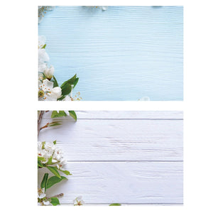 3D Double-Sided Matte Photography Background Paper in White Flower Blue White Wood Grain