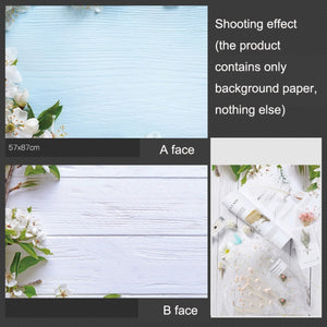 Transform your photography with our 3D Double-Sided Matte Photography Background Paper in the captivating White Flower Blue White Wood Grain design. Here's what sets it apart: