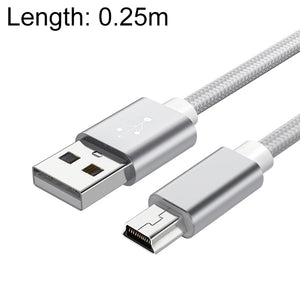 Mini USB to USB A Woven Data/Charge Cable 5 PCS for MP3, Camera, Car DVR, 0.25m Length (Silver)
