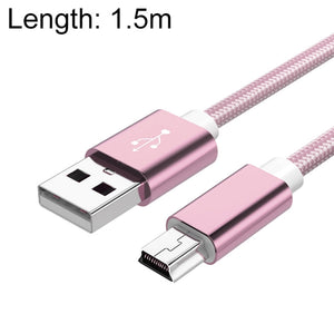 5 Piece Mini USB to USB A Woven Data/Charge Cable Set for MP3, Camera, Car DVR, 1.5m Length (Rose Gold)