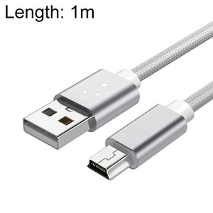 5-Piece Mini USB to USB A Woven Data/Charge Cable Set - 1m Length (Silver)