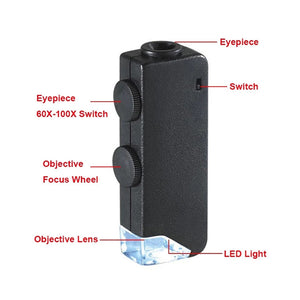 Uncover the unseen details with our 60-100X Zoom Digital Mobile Phone Microscope Magnifier. Whether you are into biological studies, jewelry making, or currency and stamp collection, this magnifier is your perfect companion. Here's why you'll love it: