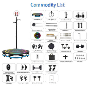 - Comprehensive Package: Our product comes with a wide range of accessories including a turntable, fill light, rotating bracket, remote controls, and various mounting and assembly components.