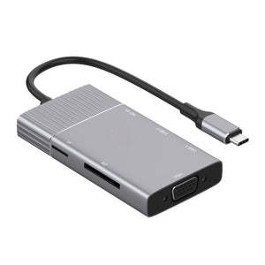 8 in 1 Type-C Hub Adapter with 4K HDMI, SD/TF, USB x 2, VGA, and 3.5mm Ports