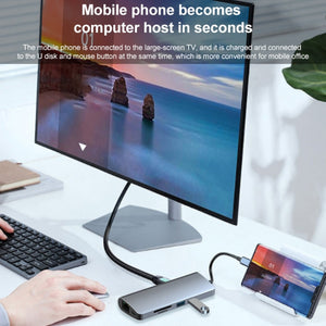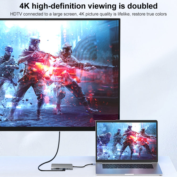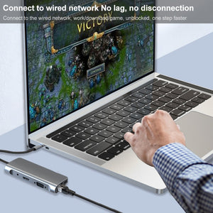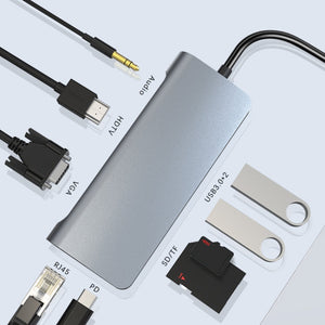 9 in 1 USB-C Hub Adapter with 4K HDMI, VGA, PD, SD/TF, 2 USB 3.0, RJ45, and Audio Interfaces