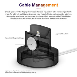Upgrade your charging experience with this versatile silicone charging holder, designed to accommodate your iPhone, iWatch, and AirPods all in one place. Crafted in sleek black silicone, this holder is not only functional but also adds a modern touch to your space.