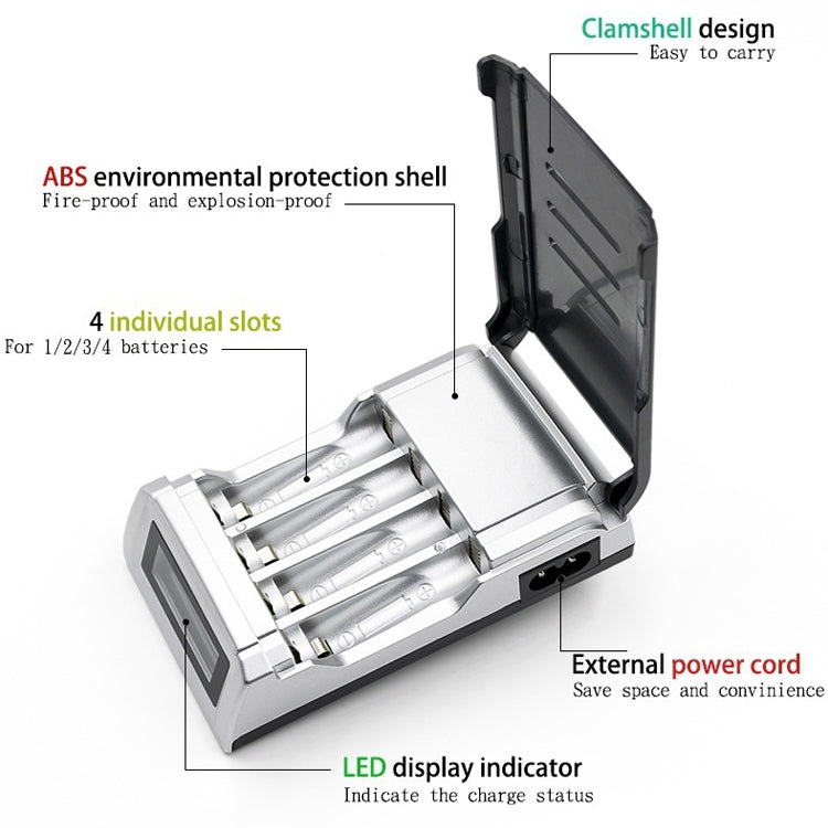 AA & AAA Battery Charger with 4 Independent Slots and LCD Display