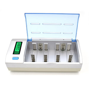 - Versatile Charging: 4-slot independent charging for AAA, AA, C or D batteries, can also charge two 9V batteries