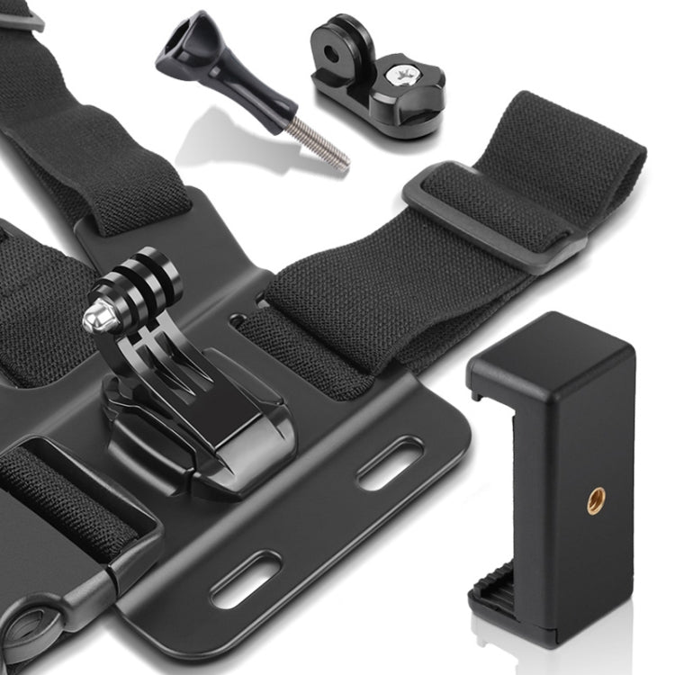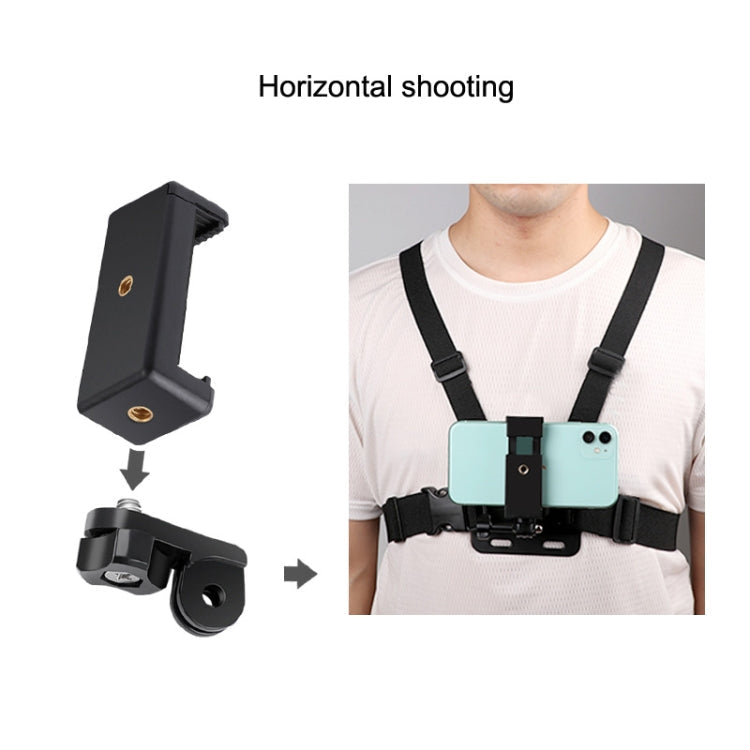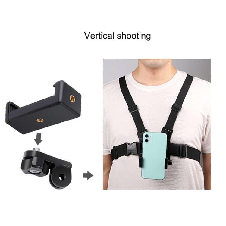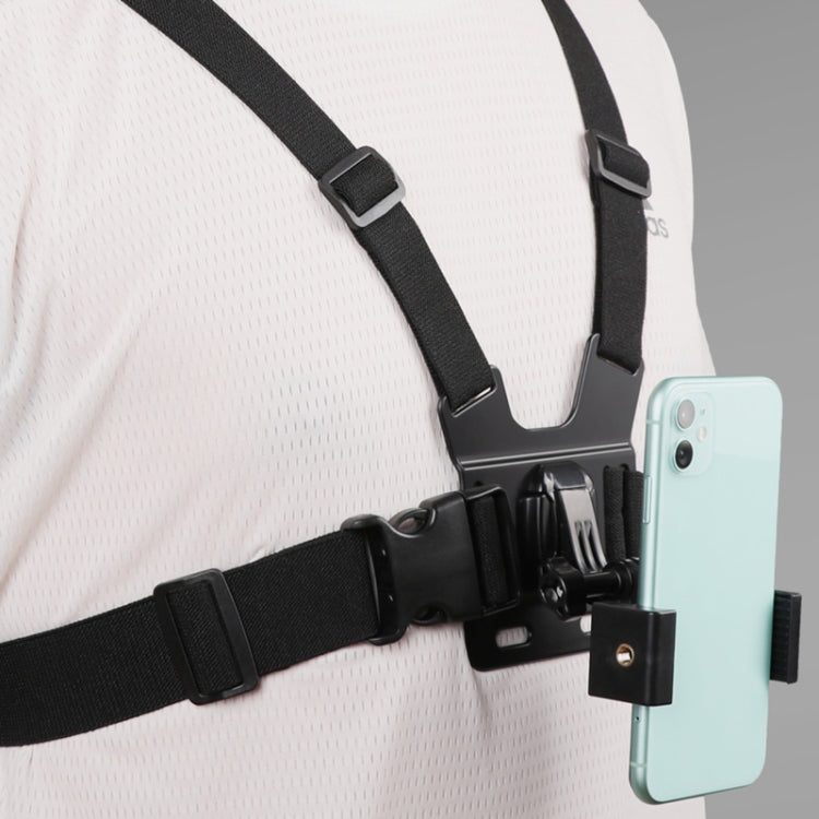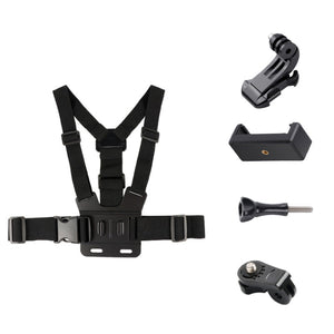 Adjustable Body Mount Belt Chest Strap with Phone Clamp and Accessories for GoPro and Action Cameras, Smartphones (Black)
