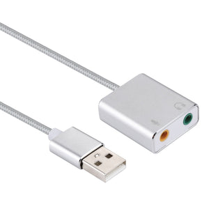Aluminum Alloy Shell External USB Virtual 7.1 Channel Sound Card with 13cm Cable for PC Laptop (Silver)