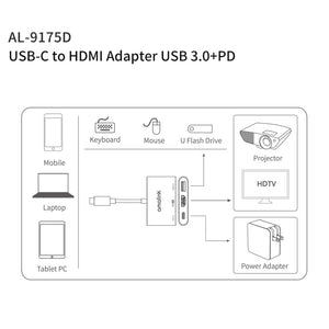 Type-C to HDMI + USB 3.0 + PD HUB Adapter by amalink 9175D (Grey)