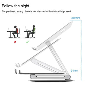 Elevate your laptop experience with the AP-2V Aluminum Alloy Laptop Stand. Crafted from sturdy aluminum alloy, its Z-type design allows for effortless height adjustment, catering to your typing, viewing, and sitting needs. The top hole enhances airflow, preventing overheating and keeping your device cool. This stand also offers ergonomic benefits by minimizing neck fatigue and shoulder tension with its flexible height and angle adjustments. Suitable for various laptops, this stand requires no tools for adjustment and is conveniently portable. Experience comfort and convenience wherever you go.