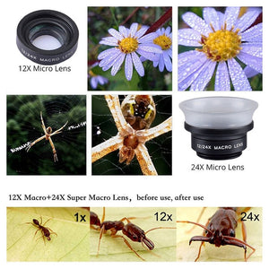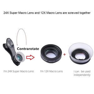 APEXEL APL-24X-H 2 in 1 Universal External 12X & 24X Macro Mobile Phone Lens with Lens Hood