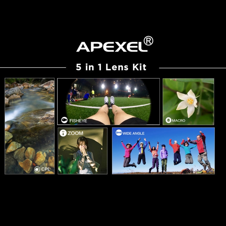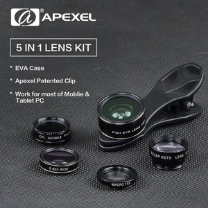 Take your smartphone photography to the next level and unleash your creativity with the APEXEL APL-DG5 5 in 1 universal lens kit.
