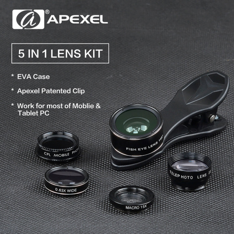 Upgrade your smartphone photography game with the APEXEL APL-DG5 5 in 1 universal lens kit. This kit includes a variety of lenses to enhance your photography experience, making it suitable for a wide range of mobile devices including iPhone, Samsung, Huawei, Xiaomi, HTC, and more.