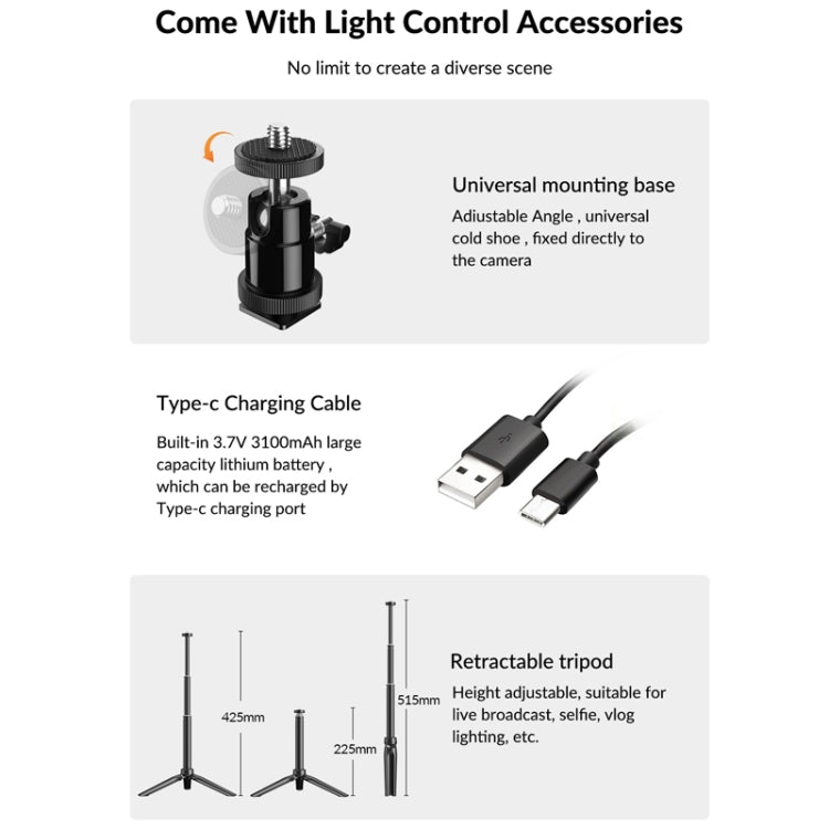 - Portable and Versatile: Weighing only 125 grams and equipped with a cold shoe and 1/4 nut design, this light is easy to carry and can be connected to tripods, cameras, or live broadcast equipment for seamless integration into your setup.