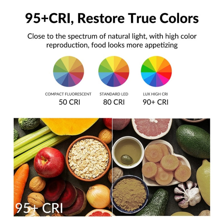 - Customizable Lighting: With a color temperature range of 2500K to 9000K and 20 light effects, you can easily adjust the light to simulate real scenes and achieve the perfect mood for your photos.