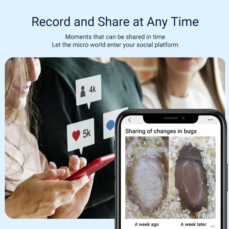 - Easy to Use: No need to install an app, simply attach the microscope to your mobile phone and start capturing high-resolution photos and videos.