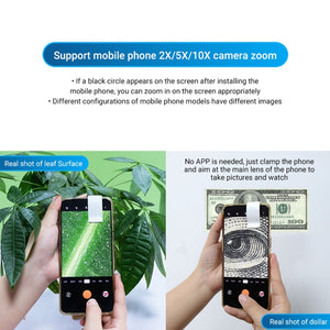 With easy installation and no app requirements, this microscope lens allows for high-resolution photo and video capture using your mobile phone's camera hardware. The APEXEL APL-MS002CWH is perfect for ground observation, detection, photography, and real-time microscopic viewing, and it can be easily shared at any time.
