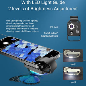 Upgrade your children's science education with the APEXEL APL-MS002CWH microscope lens. This compact and portable microscope lens offers high-definition 200x magnification, allowing for detailed observation of the microscopic world. The addition of a polarizing lens (CPL) effectively eliminates reflected light, restoring true colors for accurate observations.