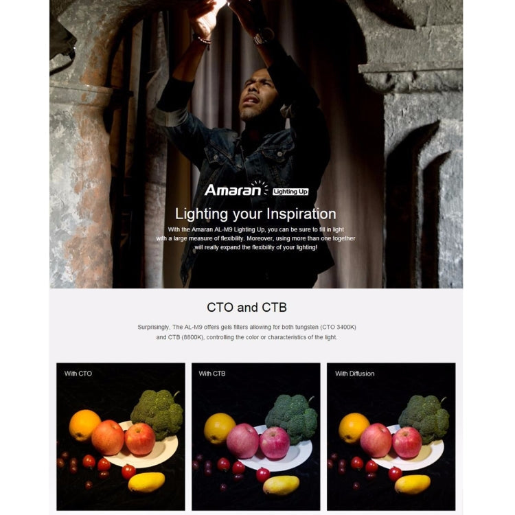 APUTURE Amaran AL-M9 LED Video Light for On-Camera Photography