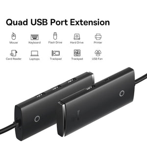 Baseus Lite Series USB 2.0x4 HUB Adapter, 25cm Cable Length (Black)