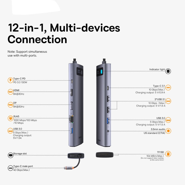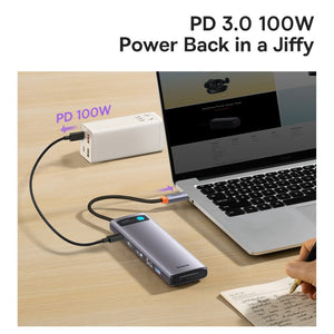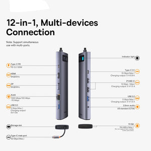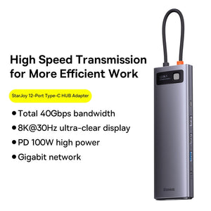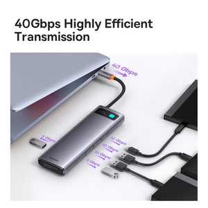 Upgrade your connectivity with the Baseus Metal Gleam Series USB4.0 12 in 1 Multifunctional USB-C Hub Docking Station in sleek grey. Here's why it's a must-have: