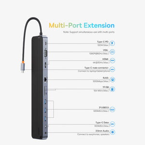 Baseus 11-in-1 USB-C Hub Adapter (Space Grey) with HDMI, USB 3.0, PD, VGA, SD/TF, RJ45, and 3.5mm Audio