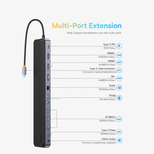 Baseus 12-in-1 USB-C Hub Adapter with HDMI, USB 3.0, PD, VGA, SD/TF, RJ45, and 3.5mm (Space Grey)