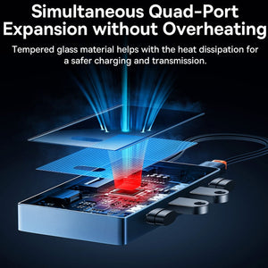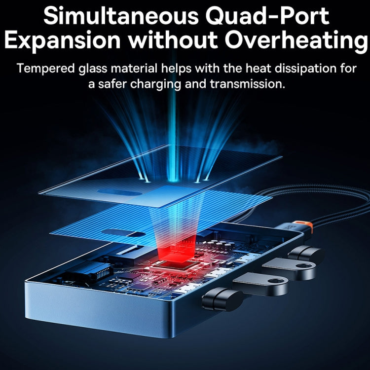 Upgrade your connectivity experience with the Baseus WKYY030013 4 in 1 USB-C / Type-C to USB3.0x4 HUB Adapter, designed for seamless functionality and enduring style.