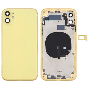 Yellow Battery Back Cover with Side Keys, Card Tray, Power + Volume Flex Cable, and Wireless Charging Module for iPhone 11