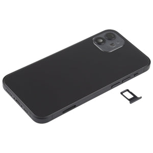 iPhone 12 Black Battery Back Cover with Side Keys, Card Tray, Flex Cable, and Wireless Charging Module